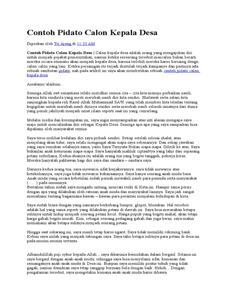Contoh pidato calon kepala dusun. Check spelling or type a new query. We did not find results for: Maybe you would like to learn more about one of these?
