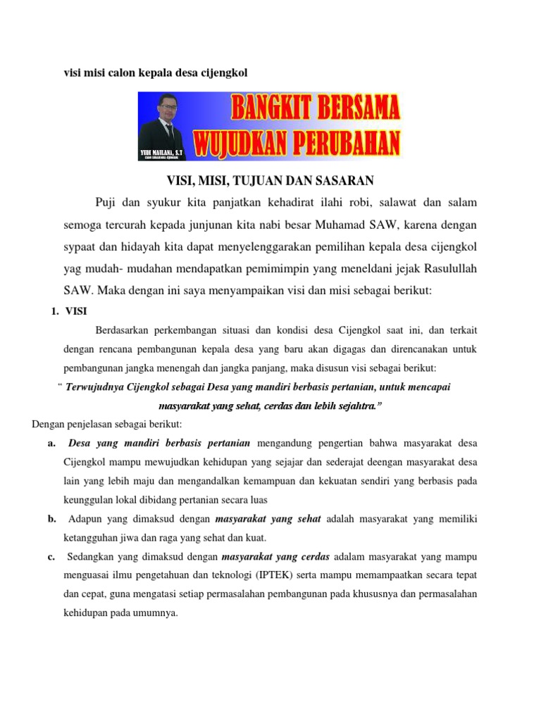 Contoh Naskah Pidato Visi Misi Bakal Calon Kepala Desa from imgv2-1-f.scribdassets.com We did not find results for: Check spelling or type a new query. Maybe you would like to learn more about one of these? Contoh pidato calon kepala dusun.